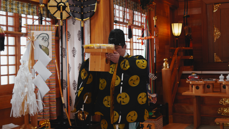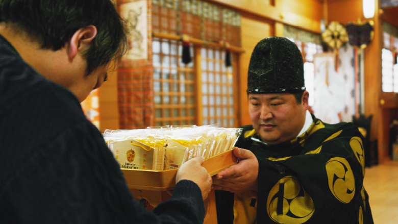 「常々お見守りいただく神様の感謝の言葉を申し上げつつ、この度のご祈祷を申し上げるのが祝詞です。今回の祝詞の中では、この町でとれた香り立つ唐花草(カラハナソウ)の毬花(きゅうか)を用いたSORACHI 1984がこのお宮の神酒であり、その上で、この神酒が多くの方々に楽しまれるよう神様にお伝えをさせていただきました。」「また、令和8年は午年。この一年が皆様にとって幸福で、駿馬のように何事も力強く前進する一年になるよう祈願をこめてご奉仕致しました。」