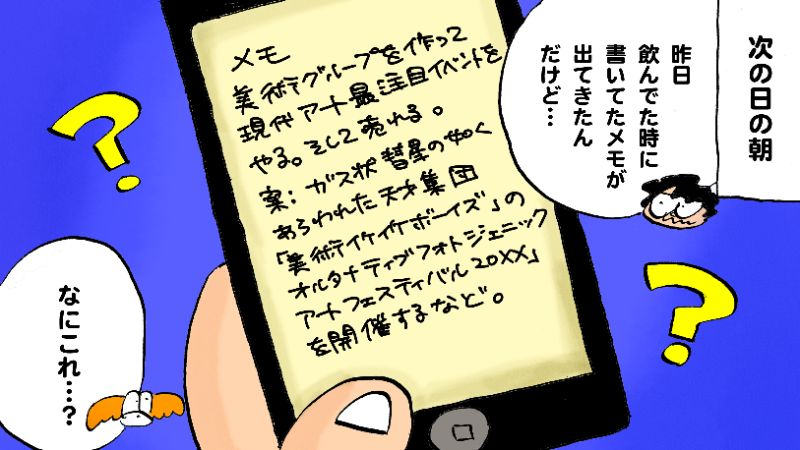 楽しかった夜の記憶は、いつもどこか曖昧。だけど、起きてしばらくしてから「そういえば、何か書いた気がする」とメモアプリを開いてみる。