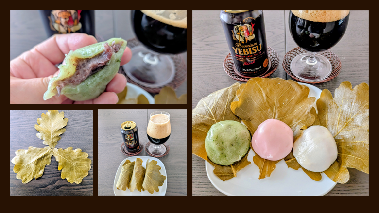 ▲柏餅とヱビス プレミアムブラックのペアリング(マン太郎宅にて)