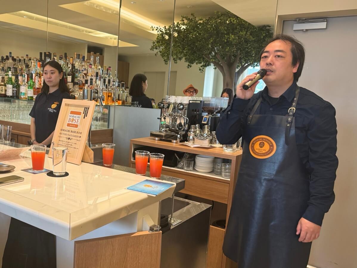「本日はSORACHI 1984とさまざまな食材を組み合わせたビアカクテルを、お寿司とともにゆっくりと味わっていただきたいと思います。いつものビールイベントとなると、どんどん食べて、ゴクゴクとビールを飲むスタイルになることが多いですが、今回はお寿司、カクテルそれぞれが持つ個性、そしてそれらが織りなすハーモニーをじっくりとご堪能いただければ幸いです」