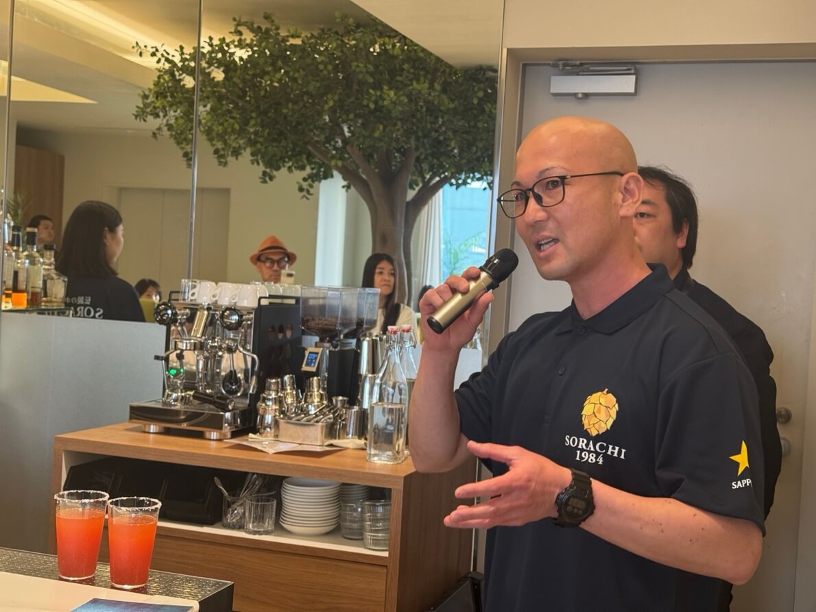 さて、今回のペアリングでは、一体どのような新しい味覚の世界が広がるのでしょうか。イベントは、まずSORACHI 1984のブリューイングデザイナーである新井健司による説明から始まりました。