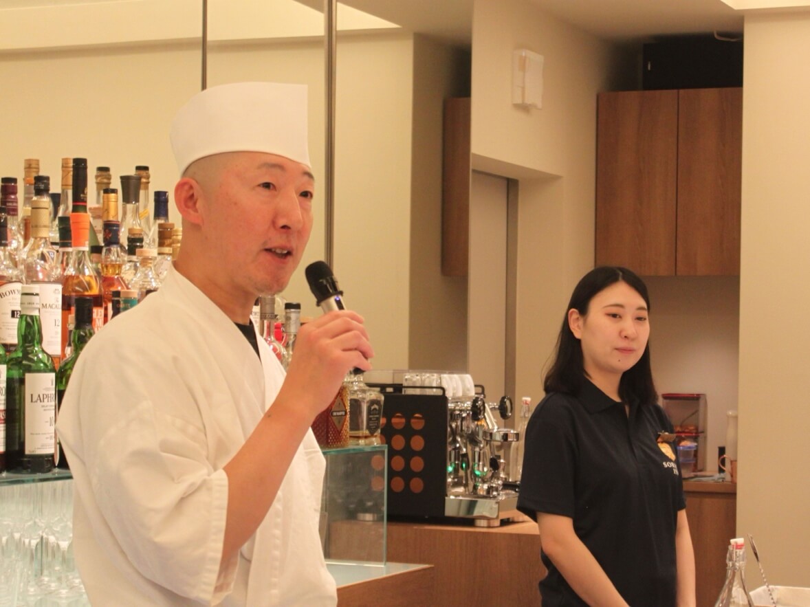 ペアリングディナーの締めくくりには、「鮨 本店上ル」の店長 渡辺 裕也さんから一言いただきました。