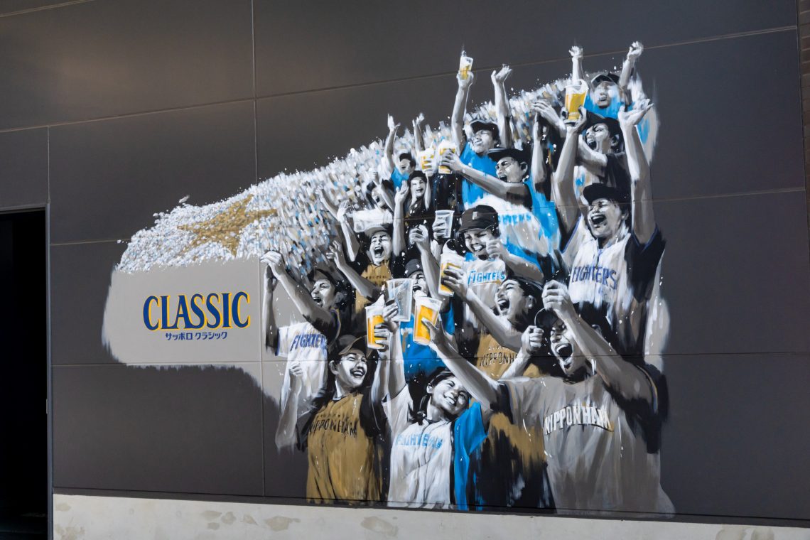 松井:「ファイターズ応援デザイン缶」で表現したかった世界観が、まさに「TOWER 11」に描かれたこの壁画そのものでした。