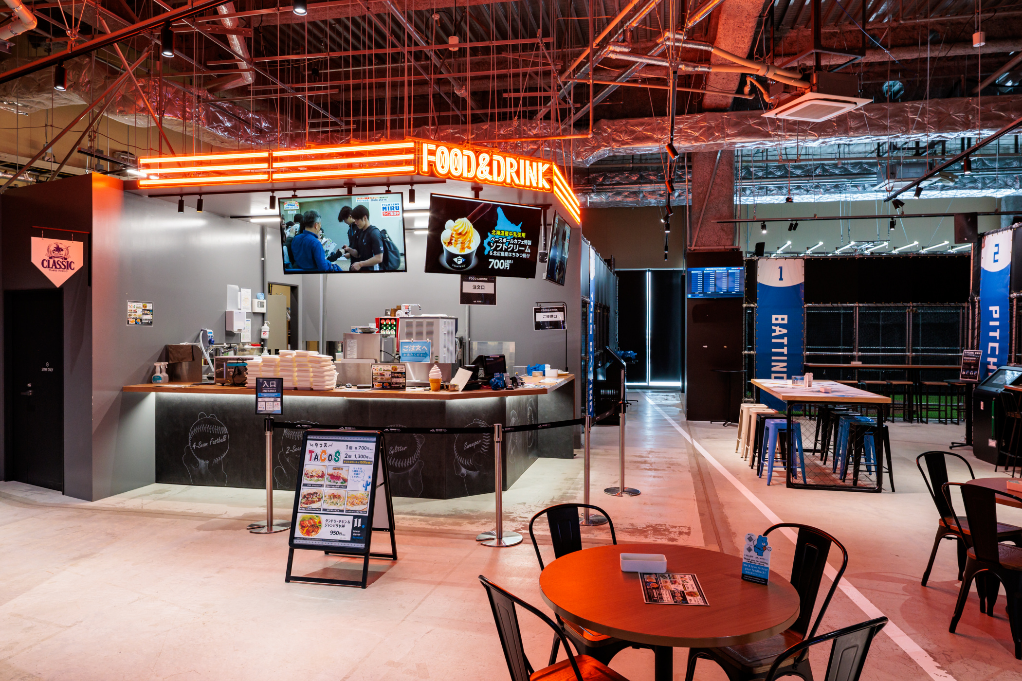 体験を楽しんだあとは、フードやドリンクも楽しめます。カウンターに飾られたホームベースを模したキュートな「サッポロ クラシック」のフラッグも、ファンなら見逃せないフォトスポットです。
