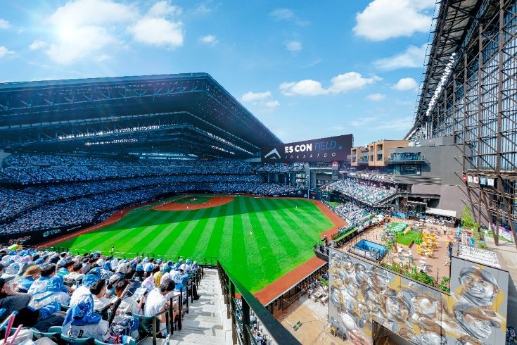 「エスコンフィールドHOKKAIDO」は、2023年に開業した北海道日本ハムファイターズの新本拠地。敷地面積約5ヘクタール、収容人数3万5,000人を誇る、日本初の開閉式屋根付き天然芝球場です。日本の球場に多い左右対称の設計ではなく、左右非対称の形状を採用しており、どこに座っても臨場感たっぷりの観戦が楽しめます。また、球場内にはアート作品が至る所に展示されており、おしゃれな雰囲気も感じられます。