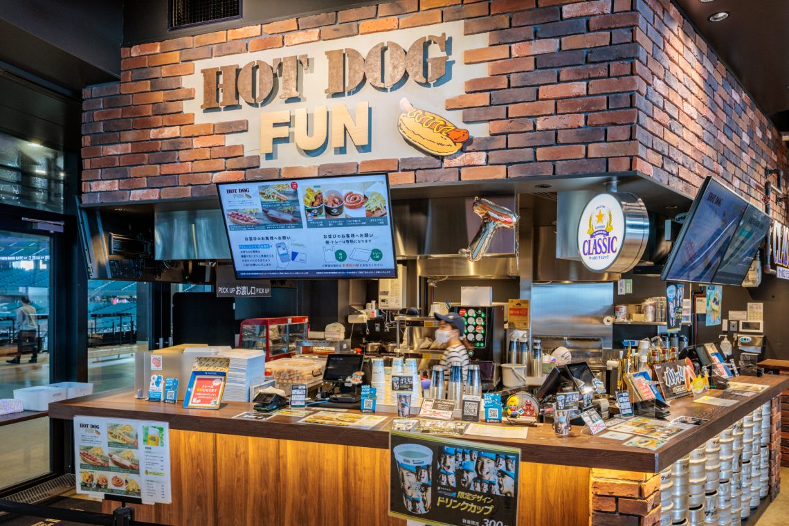 野球観戦の相棒といえば、ホットドッグ! 「HOTDOG FUN」はニッポンハムグループのオリジナルソーセージを使用したホットドッグの専門店で、手軽に楽しめるワンハンドメニューが揃っています。