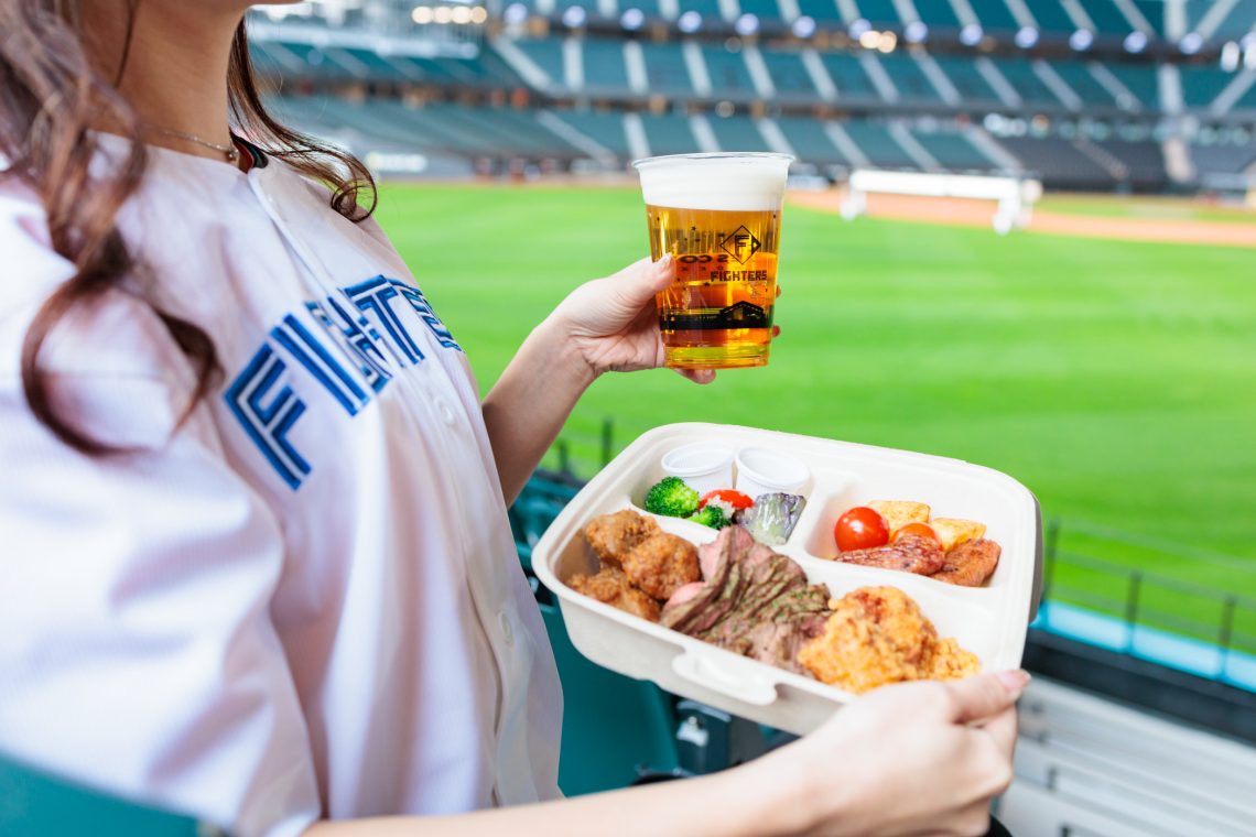 フードホールで提供されるグルメはテイクアウト可能なので、観戦席にも持ち込めます。試合を見ながらお肉と「サッポロ クラシック」を堪能する。エスコンフィールドでしかできない至福の観戦スタイルを皆さんも楽しんでみてくださいね。